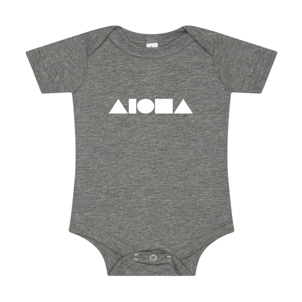 This super soft tri-blend onesie is perfect for any beach baby! The envelope neckline expands to fit easily over their head and the three snap leg closure allows for easy changes. Hand-screen printed on the front with our Aloha Shapes logo in white.