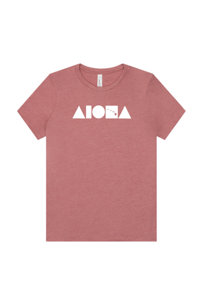 Introducing NEW women’s tees in bright heather hues. Hand screen printed on Maui with our Aloha Island Shapes logo in white.