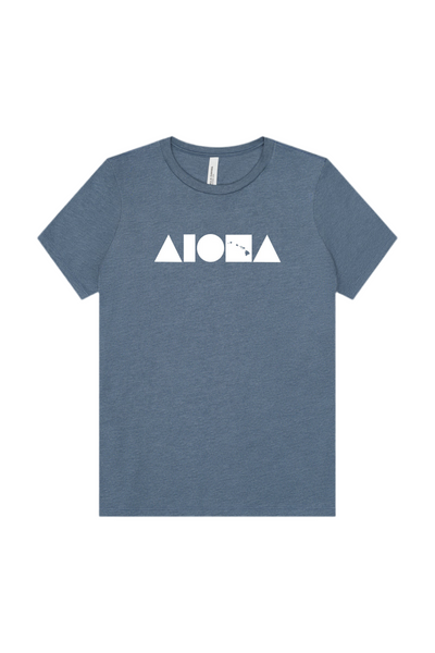 Introducing NEW women’s tees in bright heather hues. Hand screen printed on Maui with our Aloha Island Shapes logo in white.
