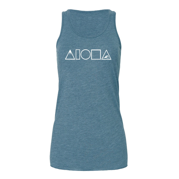 MAUKA TO MAKAI Racerback Heather Teal Tank (M)